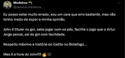 Botafoguenses comentam entrada de John