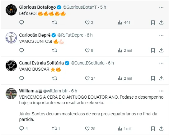 Reações da torcida sobre a vitória
