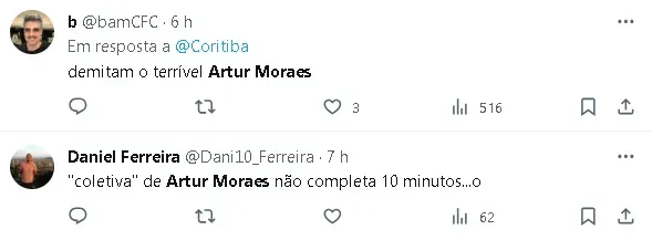 Após a confirmação do rebaixamento à Série B do Brasileiro com a derrota para o Fluminense, o head esportivo do Coritiba, Artur Moraes, expressou confiança no caminho traçado pelo clube, apesar da queda.