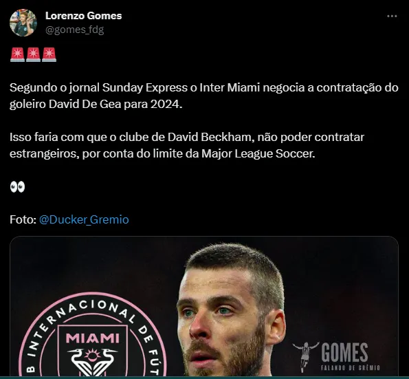 No entanto, uma notícia vindo diretamente dos Estados Unidos pode mudar o rumo de ‘El Pistolero’. Segundo o jornal Sunday Express, o Inter Miami está interessado na contratação do goleiro espanhol David De Gea.