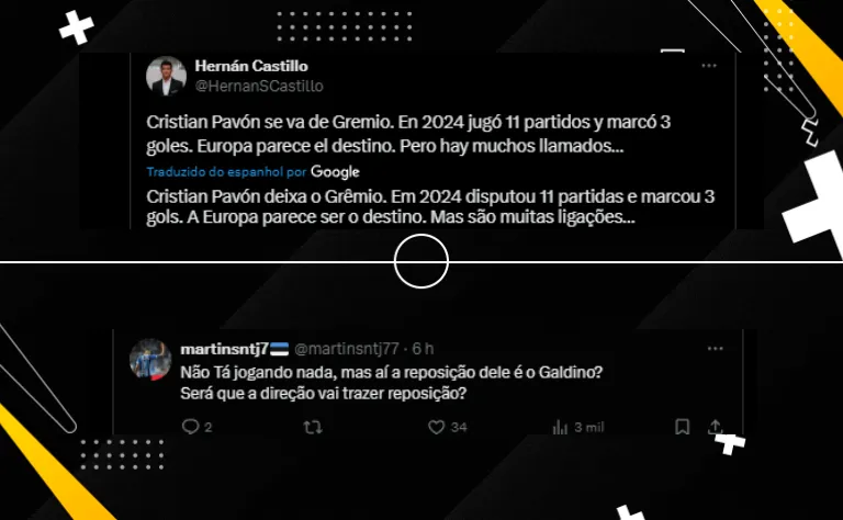 “Cristian Pavón deixando Grêmio. Em 2024 disputou 11 partidas e marcou 3 gols. A Europa parece ser o destino. Mas são muitas ligações…”, publicou o jornalista Hernan Castillo.