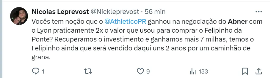 O Clube Paranaense deve receber cerca de R$ 13 milhões por essa transferência do lateral-esquerdo ao futebol francês, como informou o Globo Esporte. Nesta temporada, ele soma 22 partidas pelo Betis e uma assistência.