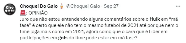 No atual ano, Hulk mantém sua posição como o principal goleador e também líder em assistências no Galo, embora Paulinho tenha se aproximado na disputa pelo topo da lista de artilheiros. Nos últimos jogos, o atacante tem brilhado mais como um assistente, contribuindo com 22 gols e 9 assistências no ano, totalizando 31 participações.