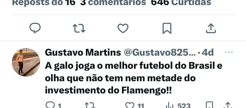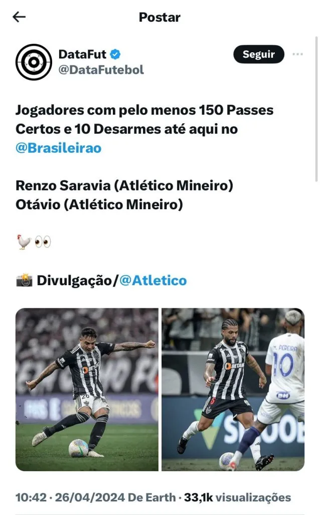 O Galo também jogou recentemente pela Copa do Brasil, na terça-feira (30), contra o Sport Recife, por 2 a 0, na Arena MRV. Agora, a equipe mineira volta a campo no sábado (4), contra o Fluminense, às 16h.