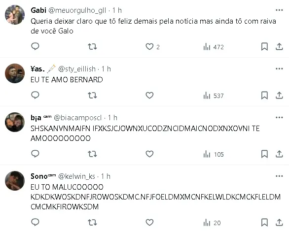 Nas publicações do Atlético-MG sobre a contratação de Bernard, os comentários dos torcedores foram marcados por mensagens de apoio, saudade e ansiedade pela volta do atacante.