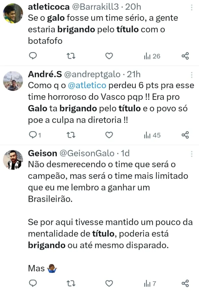 A desilusão da torcida atleticana se acentua ao lembrar das duas últimas derrotas na Arena MRV, onde o time foi superado por Coritiba e Cruzeiro, equipes que estão lutando para evitar o rebaixamento. Agora, o Atlético enfrentará o Fluminense e o Fortaleza, equipes que estão envolvidas nas finais da Libertadores e Sul-Americana, respectivamente, o que torna esses desafios ainda mais exigentes.