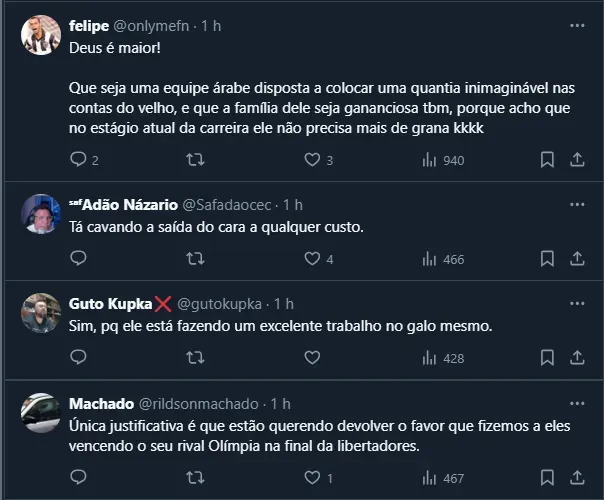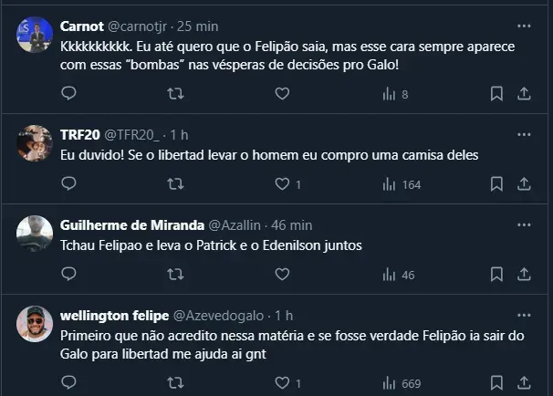 Vale ressaltar que, apesar de Luiz Felipe Scolari ser o favorito no momento e passar longe de ser unanimidade no Galo, o Libertad (ARG) ainda não fez uma proposta oficial para contar com o comandante.
