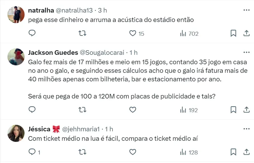 De acordo com a assessoria do clube, o Galo já atingiu a marca superior a 500 mil torcedores na Arena MRV, com um ticket médio de R$ 60,15. A média de público no estádio é de 33.509 pessoas.