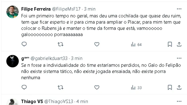 Esse é o clima na torcida do Galo após o fim do primeiro tempo!
