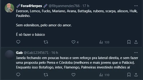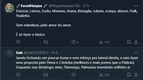 Além disso, Gustavo Scarpa ainda não desencantou e é outro ponto de decepção para os torcedores, visto que chegou com o status de melhor jogador do Brasileirão de 2022, mas ainda não se viu em campo.