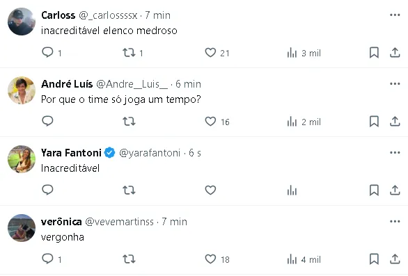 "Creio que o time fez um jogo irregular no primeiro tempo, principalmente nos lances que marcaram os gols dos rivais. Estivemos melhores no segundo tempo, o que gerou muitas situações de gol. Poderíamos até ter vencido a partida"