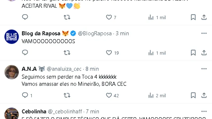 Esse é o clima dos torcedores da Raposa para o jogão de instantes!