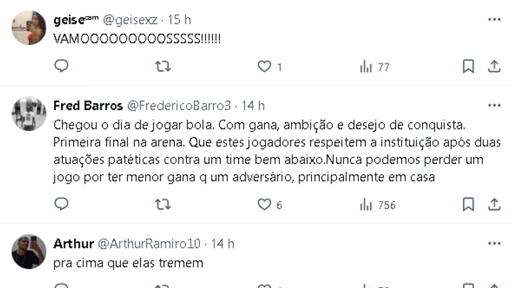 "Estamos muito focados. Sabemos que a final será muito exigente e desafiante para a gente. Estamos atentos a todos os detalhes para fazer um grande primeiro jogo. Sei que temos condições de fazer um grande jogo"