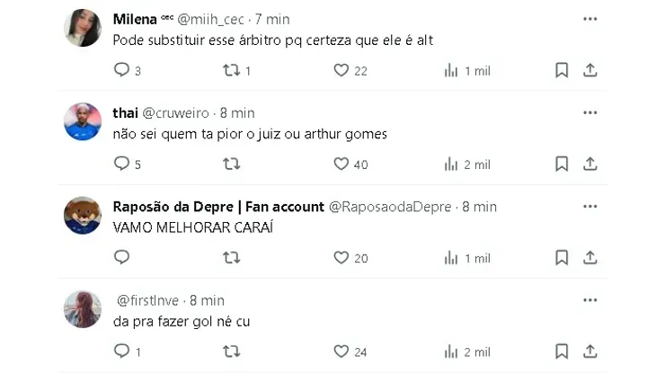 No entanto, a equipe perdeu Zaracho, que sentiu uma lesão na coxa e foi substituído por Igor Gomes aos 12 minutos. A partir dessa troca, o Cruzeiro ganhou terreno e ameaçou o gol adversário com jogadas de Arthur Gomes e Matheus Pereira.