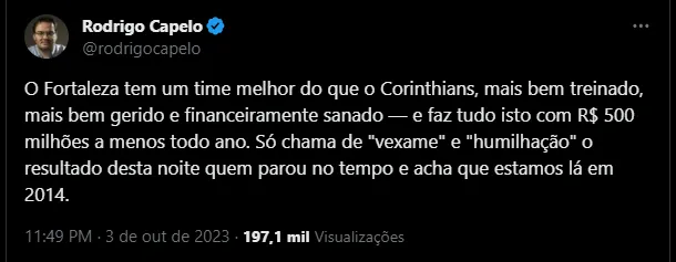 Dito isso, vale ressaltar que os gols da vitória saíram em cima do lateral Fábio Santos, experiente atleta que teve muitas dificuldades defensivas na temporada e escancarou o mau planejamento. Além disso, vale a pena ressaltar que o Leão contou com uma atuação inspirada de alguns nomes, que facilitaram a missão dos nordestinos. O jogo foi resolvido no começo do segundo tempo, com um gols aos 49’ e outro aos 55’. A finalíssima será dia 28 de outubro, no Uruguai.