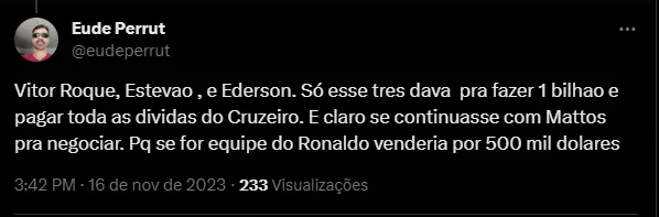 No entanto, nem tudo são más notícias na Toca da Raposa. Isso porque o portal Mundo Deportivo, da Espanha, noticiou que o Barcelona está interessado no meio-campista Éderson, revelado no Cruzeiro.