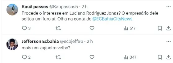 Enquanto isso, o Bahia segue as atenções nos torneios estaduais. Na quinta-feira (15), o clube comandado por Rogério Ceni entra em campo contra o América-RN, às 20h.