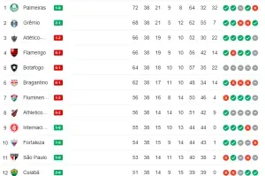 O Bahia corre sério risco de ser rebaixado. Hoje no Z-4, a equipe precisa vencer o Atlético-MG, e ainda secar Vasco e Santos que enfrentam Red Bull Bragantino e Fortaleza, respectivamente. Se o Tricolor de Aço vencer e um dos dois times perder, os comandados de Rogério Ceni seguem na primeira divisão.