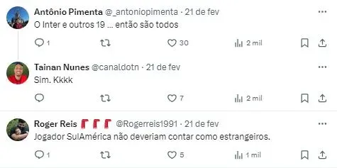 Tal situação terá a chance de ser debatida no Congresso Técnico do Brasileirão de 2024, que está prestes a ter início. Todavia, a movimentação de bastidores entre os Clubes envolvidos é que a permissão para estrangeiros suba para nove atletas. A informação é do Portal Revista Colorada.