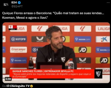 Enquanto isso, Xavi, que não estava usando Vitor Roque, se despede do Barcelona pela última vez no domingo (26), no confronto contra o Sevilla, fora de casa, pela última rodada do Campeonato Espanhol.
