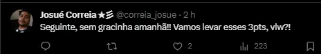 Segundo fontes ouvidas, o time respondeu bem aos treinos recentes e superou a frustração dos resultados anteriores. Apesar da aproximação dos rivais na tabela, não há um clima abalado em General Severiano, e os jogadores permanecem confiantes na busca pelo título. A equipe também celebrou o retorno do atacante Victor Sá, que estava suspenso no fim de semana.