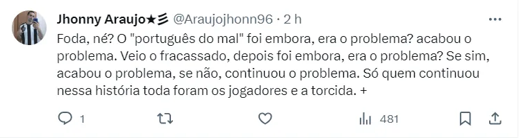 “O jogador brasileiro tem um pocuo desse relaxamento, ‘tô vencendo de 3, 4, não vou tomar amarelo’. E esse foi um erro(…) aí nós tomamos o gol e aí o time sente, e nao é só o Botafogo, isso acontece na Champions League…e entra essa questão de pôr a bola na area e numa dessa eles empataram. (…) esse jogo em questao emocional foi muito forte e a partir dali foi muito trabalhado essa parte e os próprios jogadores têm consciência de onde erraram”, finalizou Lúcio Flávio.