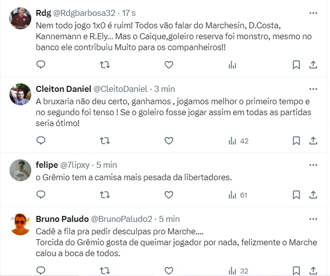 Atrás, Rodrigo Ely e Kannemann, no estilo dele, guerreiro, como sempre, seguraram as pontas, e a Conmebol escolheu o goleiro Marchesín como o cara do jogo.