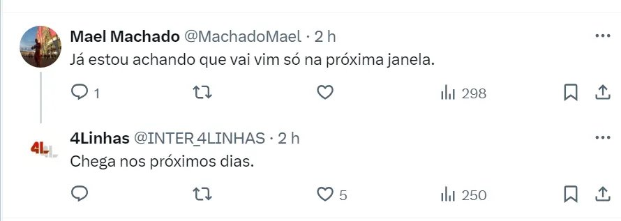 Vale lembrar que a janela de inscrições do futebol brasileiro vão até o dia 7 de março. Após essa data, o Inter só poderá inscrever atletas a partir de julho. Por isso a tentativa de ter Borré o mais rápido possível.