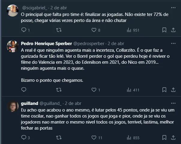 Dentre as principais críticas, a atuação do atacante Rafael Borré talvez tenha sido a que mais chamou atenção. Isso porque o colombiano perdeu mais de uma boa oportunidade de gol e frustrou os colorados.