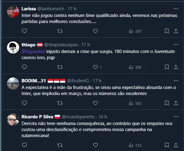 Em média, neste recorte das quatro últimas partidas, o Clube do Povo finalizou 14,5 vezes por jogo. A média no ano é de 15,2 por jogo, ou seja, claramente o peso do momento vem influenciando no grupo do Inter, assim como as saídas de Gabriel e De Pena.