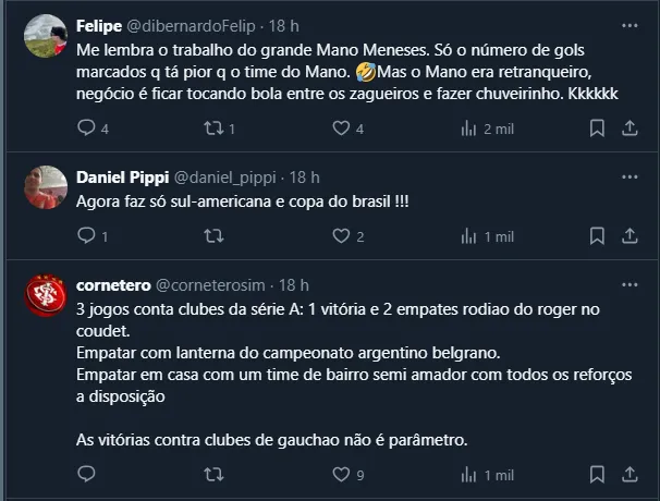 Coudet é cobrado no Internacional e tem três jogos para voltar a vencer sob risco de ser demitido
