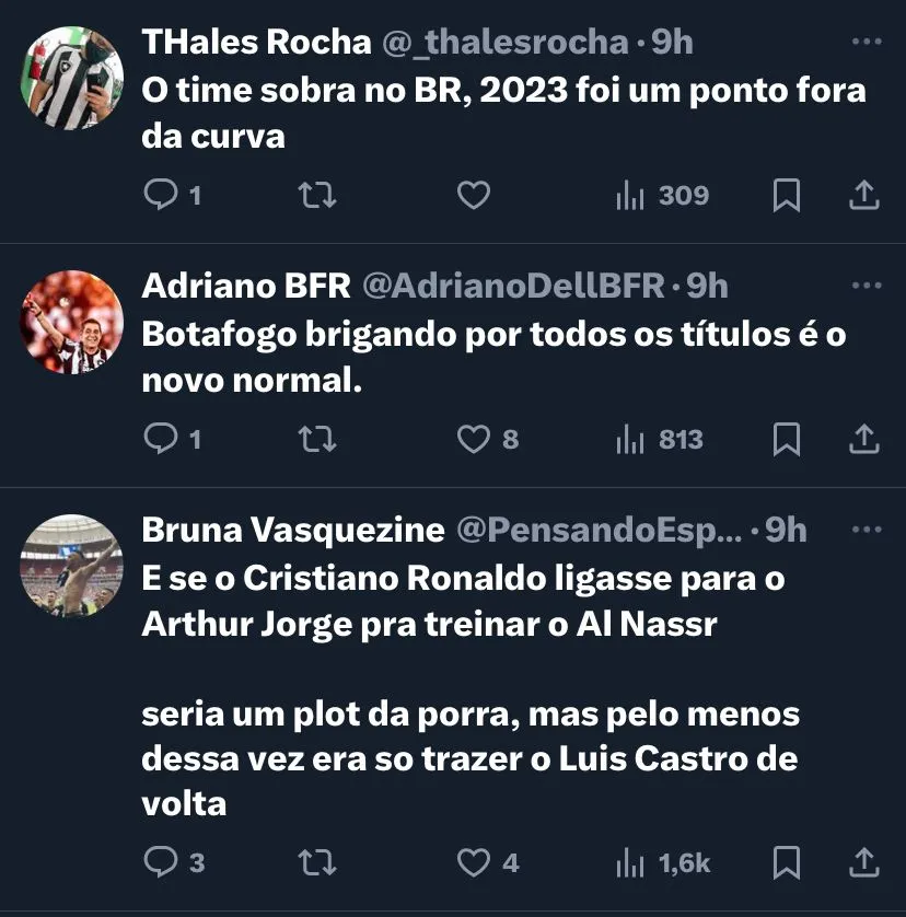 Em 2023, o Alvinegro chegou a ficar 29 rodadas consecutivas como o líder do Brasileirão, além de ter ficado 31 rodadas no geral na liderança. Mas acabou perdendo jogos importantes na reta final, perdeu o título para o Palmeiras e terminou a edição passada em apenas 5º lugar.
