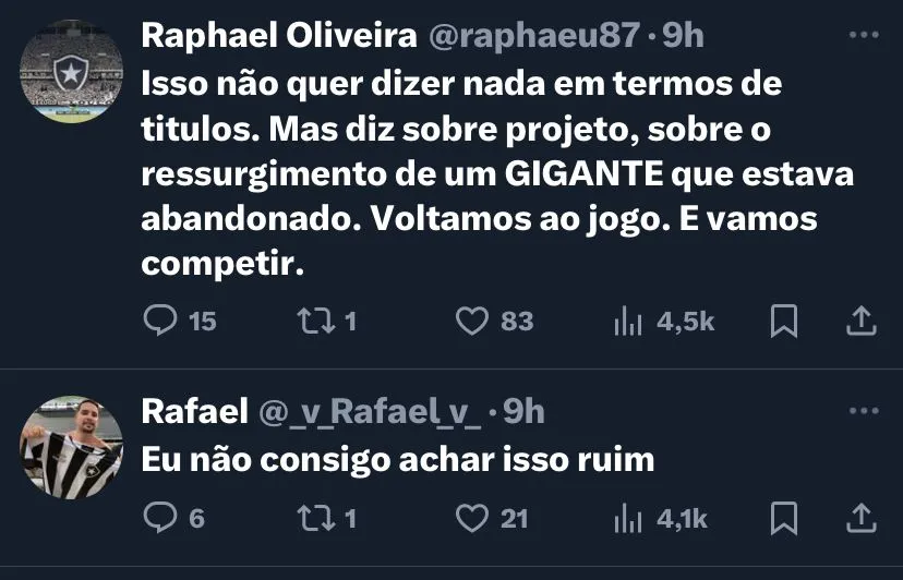 E, com isso, ajudando o Botafogo a ser um dos times que vão brigar pelo título do Brasileirão nesta temporada. No momento, o Alvinegro tem 19 pontos, um a mais que o Flamengo.