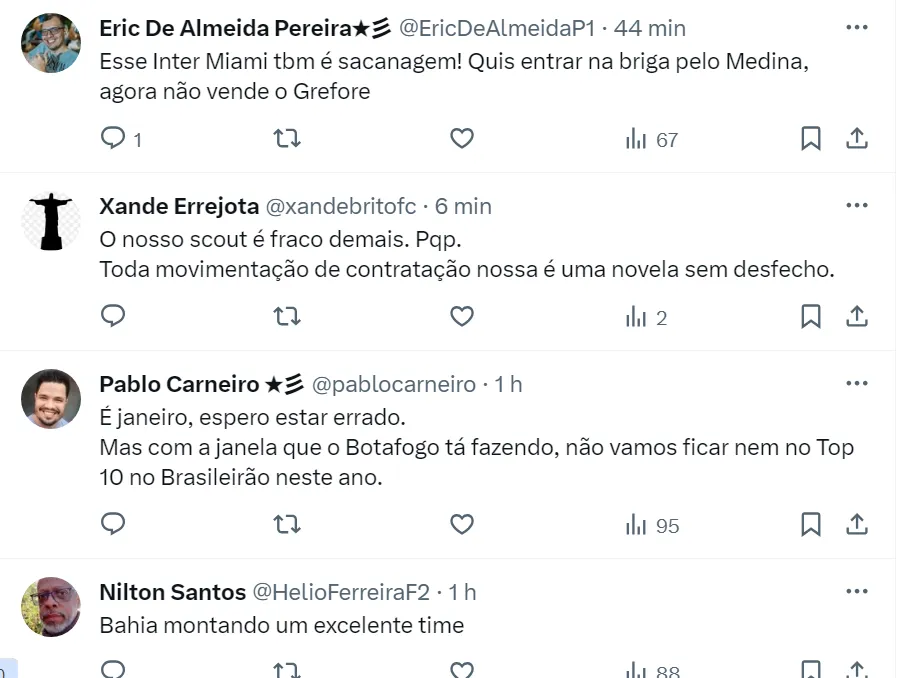 Reação da torcida do Fogão na web