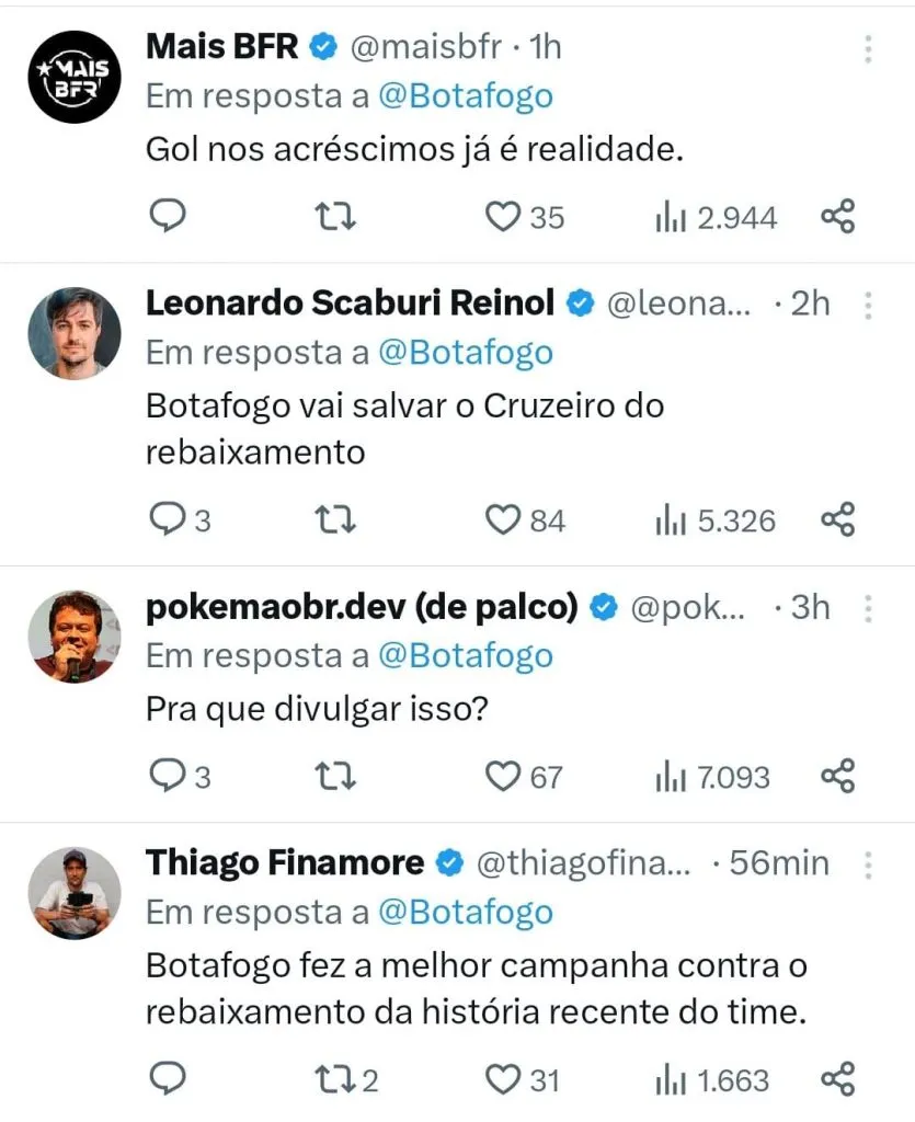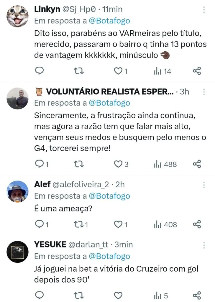 O final do Botafogo no Brasileirão foi pior do que a torcida esperava. A equipe ficou derrotada por 3 a 1 pelo Internacional, na rodada final e estacionou nos 64 pontos e ficou fora do G-4, se estabelecendo apenas na quinta colocação.