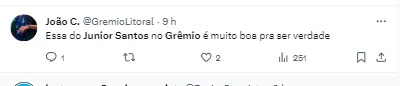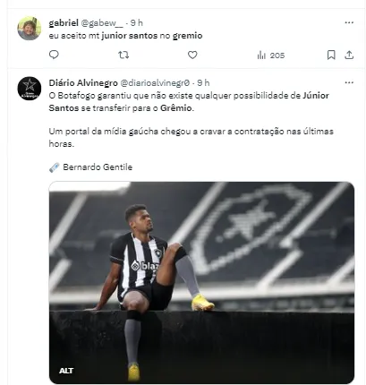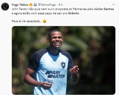 Ontem (6), saiu uma notícia quente de que o Grêmio estaria atento ao mercado em busca de um acerto com um ponta. O Tricolor Gaúcho estaria interessado em contratar o atacante Júnior Santos, do Botafogo.