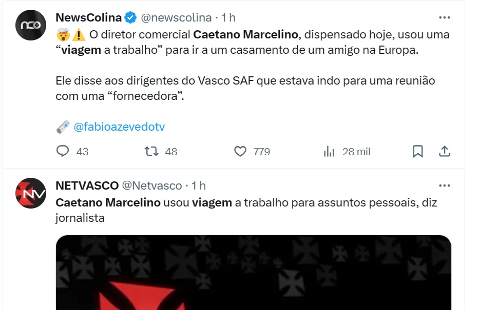 Outro motivo para a demissão de Marcelino foi supostamente mentir sobre viagens. O setorista Fábio Azevedo revelou que o ex-dirigente do Vasco teria usado uma “viagem a trabalho” para ir a um casamento de um amigo na Europa.