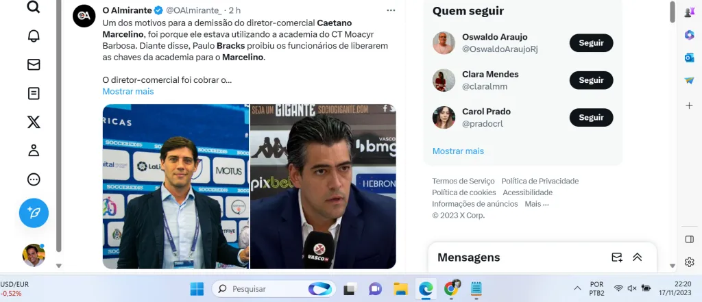 A principal notícia nesta sexta-feira (17) no Vasco foi a demissão de Caetano Marcelino da função de chefe comercial do Clube. A decisão ficou em cargo da SAF cruz-maltina.