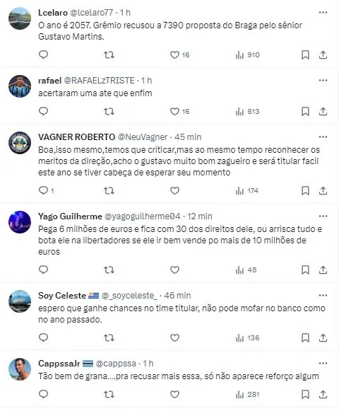 Desta forma, o Grêmio seguiu o que projetou para o zagueiro de 21 anos. Afinal, a multa rescisória de Gustavo Martins é muito acima de tais valores. O jogador é um dos mais promissores ativos do Clube, que tem 90% dos direitos econômicos do atleta.