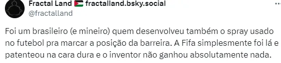 Heine Allemagne, natural de Minas Gerais, é o criador dessa inovação. Seu experimento alcançou reconhecimento global e foi utilizado em uma Copa do Mundo. “Sinto-me realizado. É muito gratificante ver o spray estrear em um Mundial aqui no Brasil. Poderia ter acontecido antes, mas o importante é que se concretizou”.