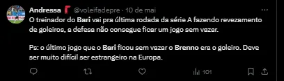 O Bari está na Segunda Divisão do futebol italiano, porém, pode ser rebaixado para a Terceira Divisão ao final da temporada e isso seria uma marca para a carreira do atleta.