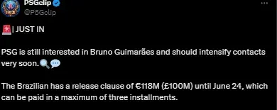 O gatilho tem um prazo de validade, que expira no próximo dia 24. Bruno Guimarães, que está na Seleção Brasileira e elogiou Dorival Júnior, tem vínculo com o clube até 2028.