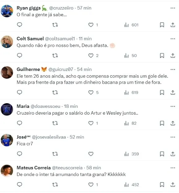Segundo o jornalista Samuel Venâncio, em seu canal no YouTube, o Cruzeiro já vem conversando com o staff do Bruno Rodrigues tentando a permanência do jogador. O profissional já havia noticiado essa semana que outro jogador renovou.