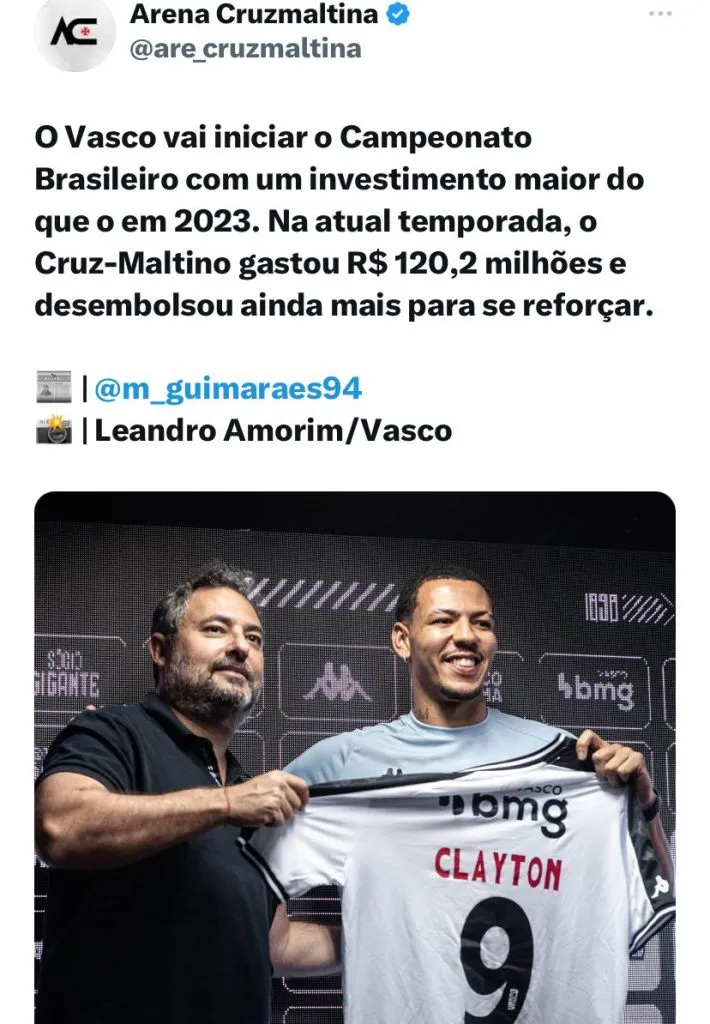 Apesar da cobrança da torcida por novas contratações, o investimento atual é maior do que no ano passado. Lembrando que em 2023, a equipe sofreu transferban da FIFA, após ficar com pendências financeiras.