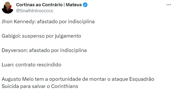 Para o comentarista, o Rei da América de 2017 está jogando fora as oportunidades. “Depois tem toda uma vida pela frente. Ele está jogando fora as oportunidades dele”, finalizou.
