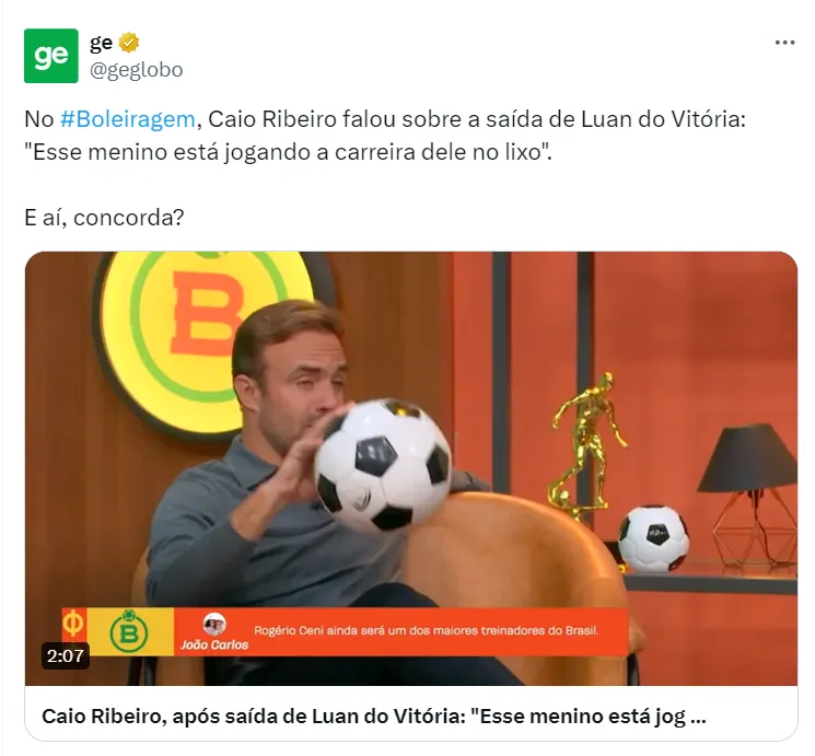 “Tem horas que você tem que parar de transferir responsabilidade e assumir a sua, ver o que você está fazendo de errado porque a carreira vai embora. E ele vai se lamentar lá na frente”, afirmou Caio Ribeiro.