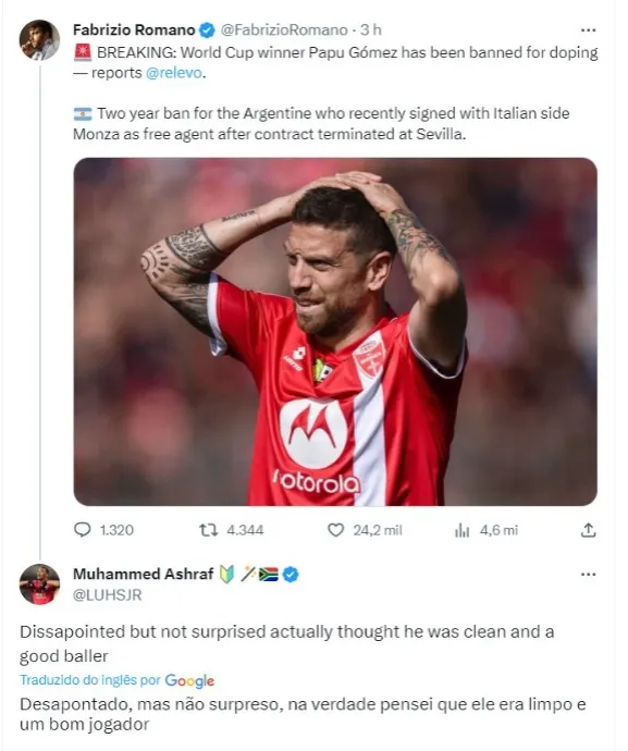 Existem muitas coisas no futebol que não funcionam muito bem, enquanto outras são feitas rigorosamente e não permitem margem de erro. Quem acabou sofrendo desta vez foi um dos parceiros de Lionel Messi na Argentina, que estava no elenco vencedor da última Copa do Mundo: Papu Gómez, vinculado ao Monza, da Itália.