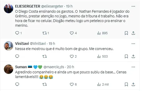 No triunfo gremista em que Pavón se destacou, Diego Costa marcou presença na Arena Gremista e acabou tomando uma atitude inesperada enquanto assistia a partida. O assunto está repercutindo muito com alguns torcedores.