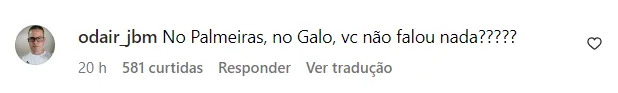 “E claro, pela instituição que é maior do que qualquer jogador, treinador, dirigente ou de quem acha que é dono clube, que é quem contratou, desrespeitando os homens que buscam fazer o certo todos os dias e principalmente as mulheres Rubro-Negras”, reiterou o comentarista.