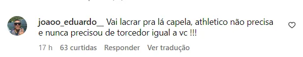 Em um dos trechos do vídeo, Cappellanes diz: “Eu não apoio o Cuca no Athletico, e eu não tenho a pretensão de mudar a sua opinião, através desse vídeo. Quando eu emito a minha opinião eu só quero que você reflita, sem ranço e sem politizar”, disse.